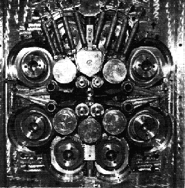 Abb. 9 : Walzgerüst einer Kaltwalzanlage. In der Mitte die vielfach abgestützten, dünnen Arbeitswalzen