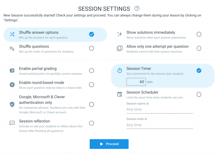 Mit Classtime lassen sich Multiple-Choice-Fragen, Wahr-Falsch-Fragen, Kurzantwort-Fragen und Kategorien-Fragen erstellen. Die Fragen werden in einer Fragesammlung gespeichert und können veröffentlicht werden, damit auch andere L Zugriff auf die Fragen haben.