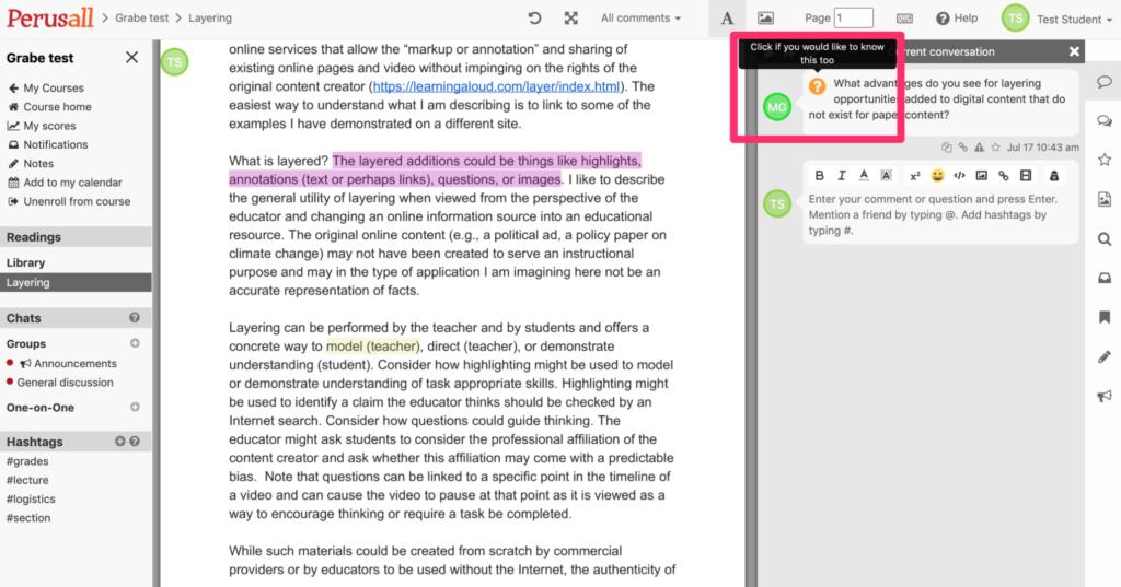 - Perusall unterstützt das Bearbeiten von Leseaufträgen durch eine Vielzahl an Features.