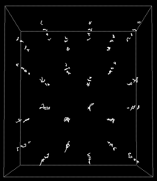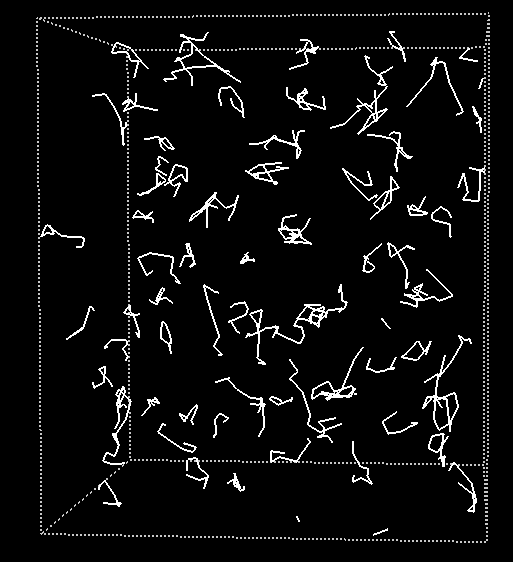 Abb 3. Pfade der O-Atome während einer kurzen Simulationszeit gasförmigem Wasserdampf.¶