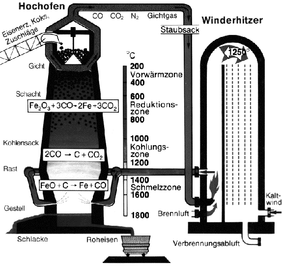 Abb. 3: Vorgänge im Hochofen
