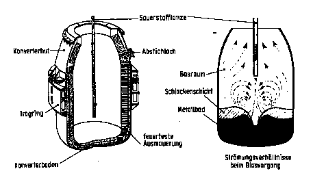 Roheisen eingeblasen wird, das vorher in den sog. Sauerstoffblaskonverter