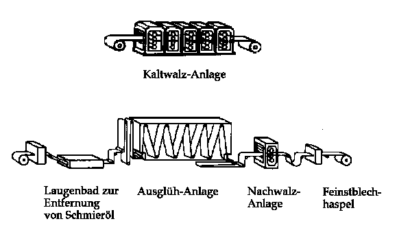 Abb. 10: Schema eines Kaltwalzwerk mit anschliessender Ausglühanlage