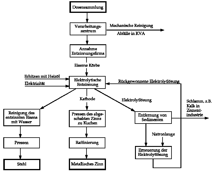 Abb. 6: Ablauf des Recyclings von Weissblechdosen