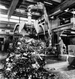 * Der weitaus grösste Teil des Eisens (bei 100 Konservendosen 5.08 kg) wird schliesslich in die Kehrichtschlacke gelangen. Bei einem Teil der Schlacke wird mit einem Magnetabscheider das Eisen abgetrennt, was aber elektrische Energie für den Abscheider erfordert.