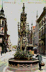Freiburg, Gotischer Brunnen mit trinkendem Boten
